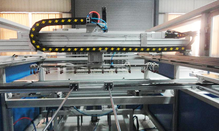 3.將電池串按不同方向自動擺放到玻璃上,電池串的精準度±0.1mm,引起破片和隱裂的比例不能超過0.05%。設(shè)備可生產(chǎn)125、156電池片,電池片以方形八角形均可。
